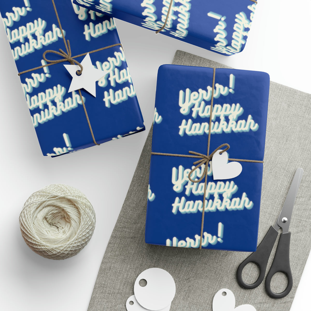 Yerrr Happy Hanukkah Blue on Blue Wrapping Paper